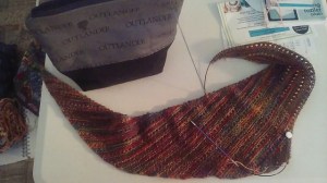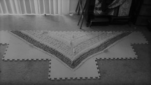 Gauge doesn’t really matter for this shawl. However, the Sample was knit with 7 stitches and 9 rows per inch in Stockinette.