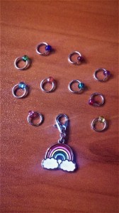 - A set of 30 Rainbow Silicone Stitch Markers & Rainbow Progress Keeper from WhimzeeStitches Design.