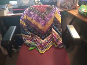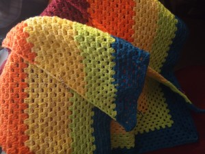 - A Crochet Pride Shawl made by me. Pattern: Quick & Simple Granny Shawl by Hannah Owens.