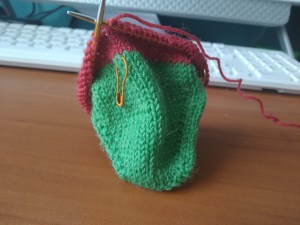 - Yarn: West Yorkshire Spinners, Signature 4 Ply the red and green from the socks. Will explain this more later…