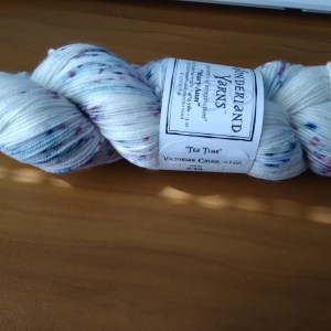 - Wonderland Yarns – MaryAnn (fingering: 475 yds) color: Tea Time “Victorian China, #166