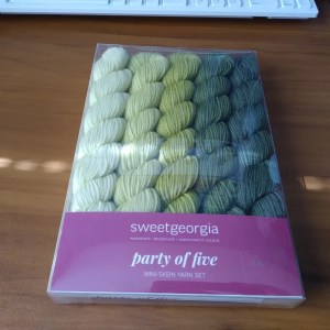 - SweetGeorgia Yarns: Party of 5 (mini-skein set: Tough Love Sock – 105 yards per mini-skein) colors: 4th and Vine, Basil, Pistachio, Melon, Sourpuss