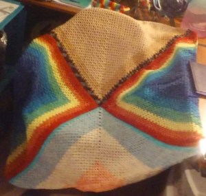 - A Crochet Pride Shawl made by me. Pattern: Quick & Simple Granny Shawl by Hannah Owens.