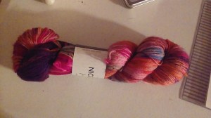 - A skein of yarn from Nice & Knit in the “Times Square” color on their Fingering Base.
