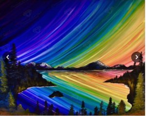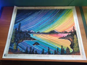 “Rainbow Reflections” by Deborah Malcolm. Round Drills. 55 colors. 6 ABs. 64cm x 51 cm (25X20in). This kit came from DAC (Diamond Art Club). Pic above is also from their website, so they own it….