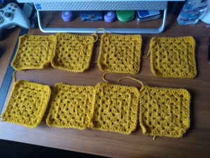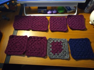 1) Followers Squares Blanket (no pattern. Join as you go. Fingering weight scraps)