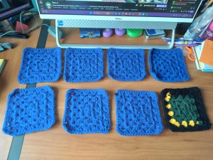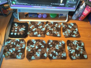 3) Blue Round Blanket – no pattern. Just increasing out as I work it.