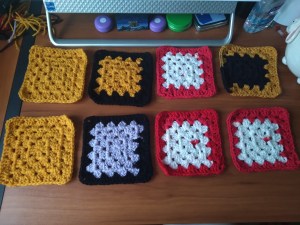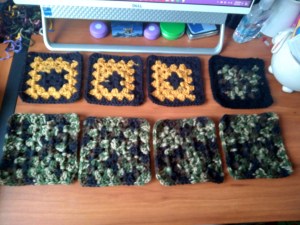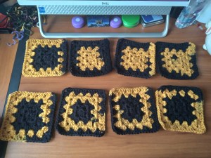 1) Followers Squares Blanket (no pattern. Join as you go. Fingering weight scraps)
