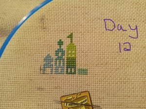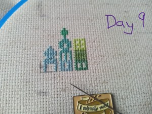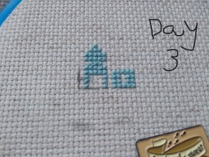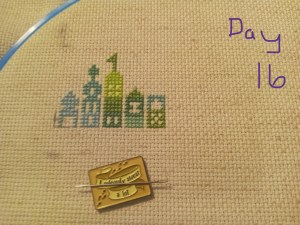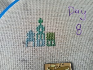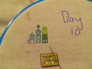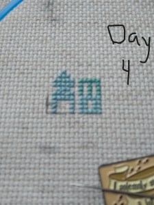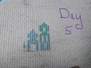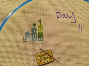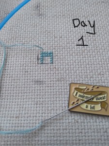 So, this is one of the odd weeks. As I mentioned above, I had issues figuring out how and when I wanted to work on each day of this project. That, and I was a bit trolled by some brain fog, as I tried to figure out how the app works. It’s okay though. We figured it out. It ended up that all three of these days were the same color, so I had some fun stitching them. Here are the pictures I took of each day, so you can see the progression of the days. As you can see, there aren’t many stitches to do each day. It’s what got me thinking that I should give some time between stitching sessions. As I know myself, I thought stitching every Saturday would be the PERFECT way to make sure I keep this project going at a good pace. Usually, I’ll binge projects (and work on them for long amounts of time, risking injuries) until they make me mad, then put them aside for months. I didn’t want to do that to this project, so… This is my solution.