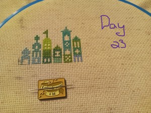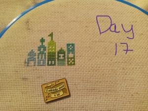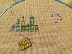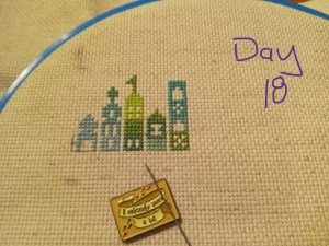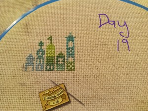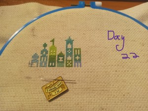 So, this is one of the odd weeks. As I mentioned above, I had issues figuring out how and when I wanted to work on each day of this project. That, and I was a bit trolled by some brain fog, as I tried to figure out how the app works. It’s okay though. We figured it out. It ended up that all three of these days were the same color, so I had some fun stitching them. Here are the pictures I took of each day, so you can see the progression of the days. As you can see, there aren’t many stitches to do each day. It’s what got me thinking that I should give some time between stitching sessions. As I know myself, I thought stitching every Saturday would be the PERFECT way to make sure I keep this project going at a good pace. Usually, I’ll binge projects (and work on them for long amounts of time, risking injuries) until they make me mad, then put them aside for months. I didn’t want to do that to this project, so… This is my solution.