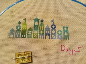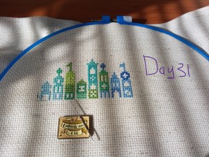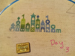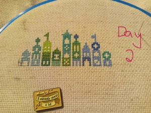 So, this is one of the odd weeks. As I mentioned above, I had issues figuring out how and when I wanted to work on each day of this project. That, and I was a bit trolled by some brain fog, as I tried to figure out how the app works. It’s okay though. We figured it out. It ended up that all three of these days were the same color, so I had some fun stitching them. Here are the pictures I took of each day, so you can see the progression of the days. As you can see, there aren’t many stitches to do each day. It’s what got me thinking that I should give some time between stitching sessions. As I know myself, I thought stitching every Saturday would be the PERFECT way to make sure I keep this project going at a good pace. Usually, I’ll binge projects (and work on them for long amounts of time, risking injuries) until they make me mad, then put them aside for months. I didn’t want to do that to this project, so… This is my solution.