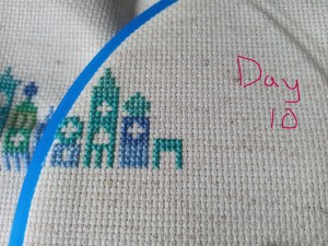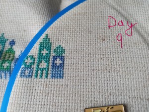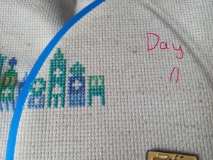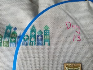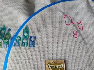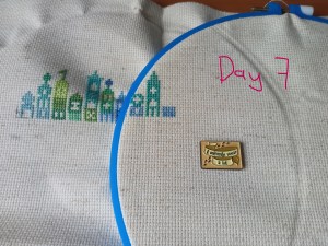 So, this is one of the odd weeks. As I mentioned above, I had issues figuring out how and when I wanted to work on each day of this project. That, and I was a bit trolled by some brain fog, as I tried to figure out how the app works. It’s okay though. We figured it out. It ended up that all three of these days were the same color, so I had some fun stitching them. Here are the pictures I took of each day, so you can see the progression of the days. As you can see, there aren’t many stitches to do each day. It’s what got me thinking that I should give some time between stitching sessions. As I know myself, I thought stitching every Saturday would be the PERFECT way to make sure I keep this project going at a good pace. Usually, I’ll binge projects (and work on them for long amounts of time, risking injuries) until they make me mad, then put them aside for months. I didn’t want to do that to this project, so… This is my solution.