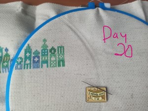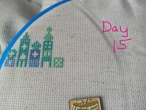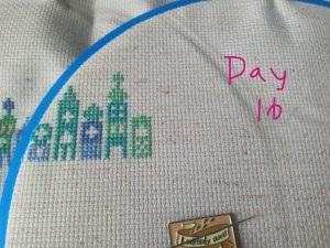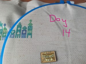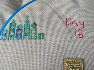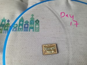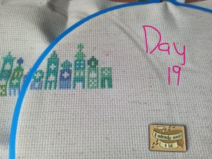 So, this is one of the odd weeks. As I mentioned above, I had issues figuring out how and when I wanted to work on each day of this project. That, and I was a bit trolled by some brain fog, as I tried to figure out how the app works. It’s okay though. We figured it out. It ended up that all three of these days were the same color, so I had some fun stitching them. Here are the pictures I took of each day, so you can see the progression of the days. As you can see, there aren’t many stitches to do each day. It’s what got me thinking that I should give some time between stitching sessions. As I know myself, I thought stitching every Saturday would be the PERFECT way to make sure I keep this project going at a good pace. Usually, I’ll binge projects (and work on them for long amounts of time, risking injuries) until they make me mad, then put them aside for months. I didn’t want to do that to this project, so… This is my solution.