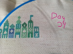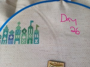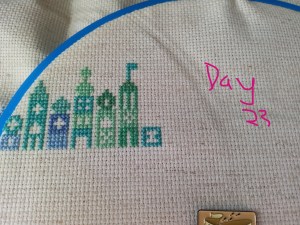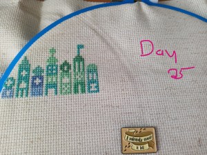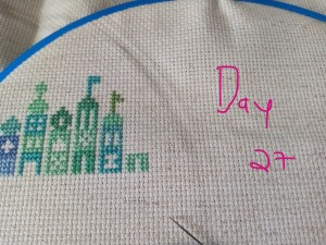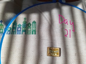 So, this is one of the odd weeks. As I mentioned above, I had issues figuring out how and when I wanted to work on each day of this project. That, and I was a bit trolled by some brain fog, as I tried to figure out how the app works. It’s okay though. We figured it out. It ended up that all three of these days were the same color, so I had some fun stitching them. Here are the pictures I took of each day, so you can see the progression of the days. As you can see, there aren’t many stitches to do each day. It’s what got me thinking that I should give some time between stitching sessions. As I know myself, I thought stitching every Saturday would be the PERFECT way to make sure I keep this project going at a good pace. Usually, I’ll binge projects (and work on them for long amounts of time, risking injuries) until they make me mad, then put them aside for months. I didn’t want to do that to this project, so… This is my solution.