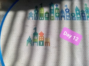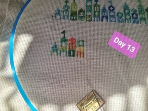 So, this is one of the odd weeks. As I mentioned above, I had issues figuring out how and when I wanted to work on each day of this project. That, and I was a bit trolled by some brain fog, as I tried to figure out how the app works. It’s okay though. We figured it out. It ended up that all three of these days were the same color, so I had some fun stitching them. Here are the pictures I took of each day, so you can see the progression of the days. As you can see, there aren’t many stitches to do each day. It’s what got me thinking that I should give some time between stitching sessions. As I know myself, I thought stitching every Saturday would be the PERFECT way to make sure I keep this project going at a good pace. Usually, I’ll binge projects (and work on them for long amounts of time, risking injuries) until they make me mad, then put them aside for months. I didn’t want to do that to this project, so… This is my solution.