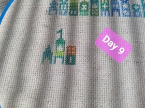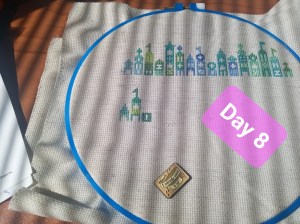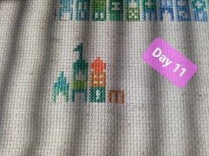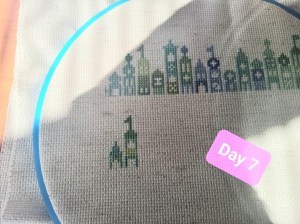 So, this is one of the odd weeks. As I mentioned above, I had issues figuring out how and when I wanted to work on each day of this project. That, and I was a bit trolled by some brain fog, as I tried to figure out how the app works. It’s okay though. We figured it out. It ended up that all three of these days were the same color, so I had some fun stitching them. Here are the pictures I took of each day, so you can see the progression of the days. As you can see, there aren’t many stitches to do each day. It’s what got me thinking that I should give some time between stitching sessions. As I know myself, I thought stitching every Saturday would be the PERFECT way to make sure I keep this project going at a good pace. Usually, I’ll binge projects (and work on them for long amounts of time, risking injuries) until they make me mad, then put them aside for months. I didn’t want to do that to this project, so… This is my solution.