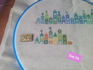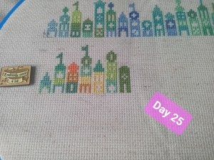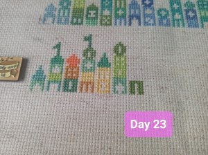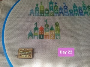 So, this is one of the odd weeks. As I mentioned above, I had issues figuring out how and when I wanted to work on each day of this project. That, and I was a bit trolled by some brain fog, as I tried to figure out how the app works. It’s okay though. We figured it out. It ended up that all three of these days were the same color, so I had some fun stitching them. Here are the pictures I took of each day, so you can see the progression of the days. As you can see, there aren’t many stitches to do each day. It’s what got me thinking that I should give some time between stitching sessions. As I know myself, I thought stitching every Saturday would be the PERFECT way to make sure I keep this project going at a good pace. Usually, I’ll binge projects (and work on them for long amounts of time, risking injuries) until they make me mad, then put them aside for months. I didn’t want to do that to this project, so… This is my solution.
